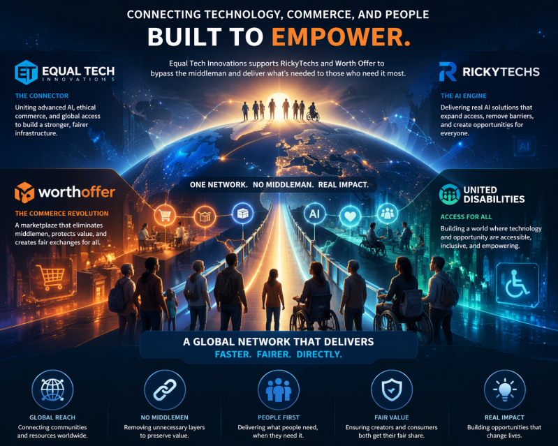 With Equal Tech Innovations supporting both RickyTechs and Worth Offer, we are no longer operating as separate platforms. We are operating as a connected ecosystem. One that allows technology to inform commerce, commerce to support accessibility, and accessibility to drive innovation forward.
